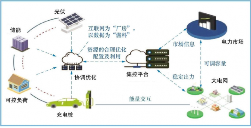 虛擬電廠是一種通過信息技術和軟件系統,實現分布式電源、儲能、可控負荷、電動汽車等多種分布式資源聚合和協同優化的協調管理系統。通過虛擬電廠,可提升電力保供和新能源就地消納能力,助力構建新型電力系統。