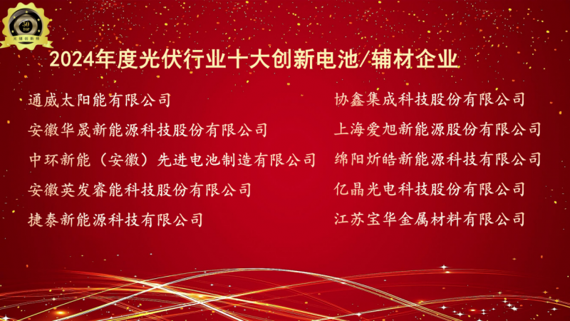 11月28日,「TOP 50」2024光伏&儲能創新榜(「PV TOP 50」光伏創新榜 &「ES TOP 50」儲能創新榜)頒獎典禮在安徽合肥盛大召開。來自光儲行業的專家學者和企業代表齊聚一堂,共同見證了“2024年度光伏行業十大創新組件企業”、“2024年度光伏行業十大創新逆變器企業”、“2024年度工商業光伏品牌影響力企業”、“2024年度儲能行業創新PCS企業”、“2024年度儲能行業創新系統集成商”、“2024年度工商業儲能品牌影響力企業”等多個重磅獎項的頒發。