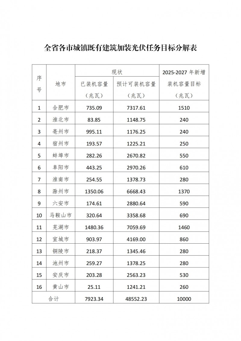 到2027年,新增城鎮既有建筑加裝光伏裝機容量力爭達到10000兆瓦,建筑光伏一體化在全省各類建筑實現規模化、市場化應用,基本形成安徽特色建筑光伏產業高質量發展格局。