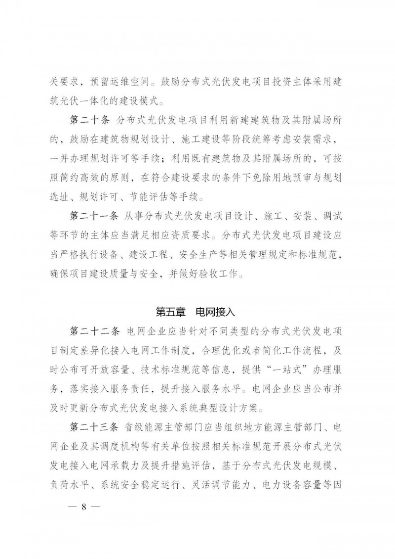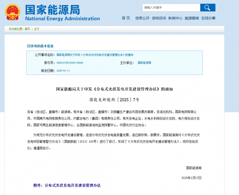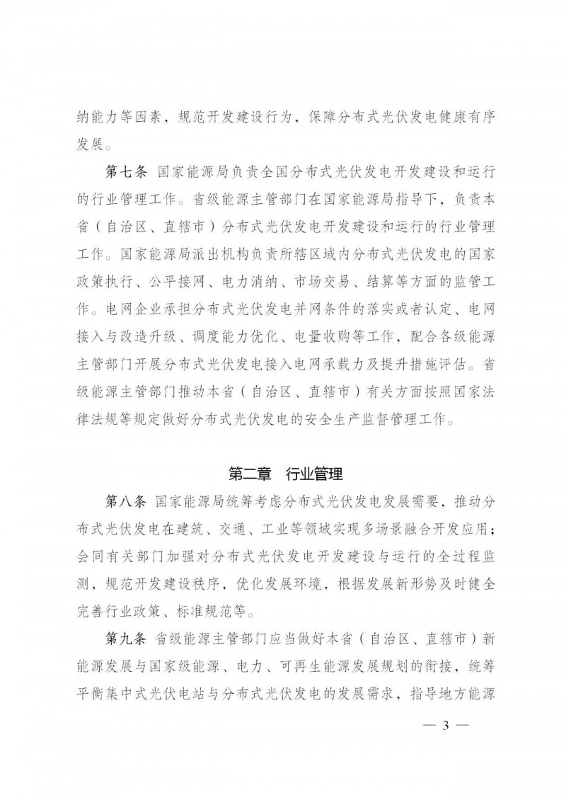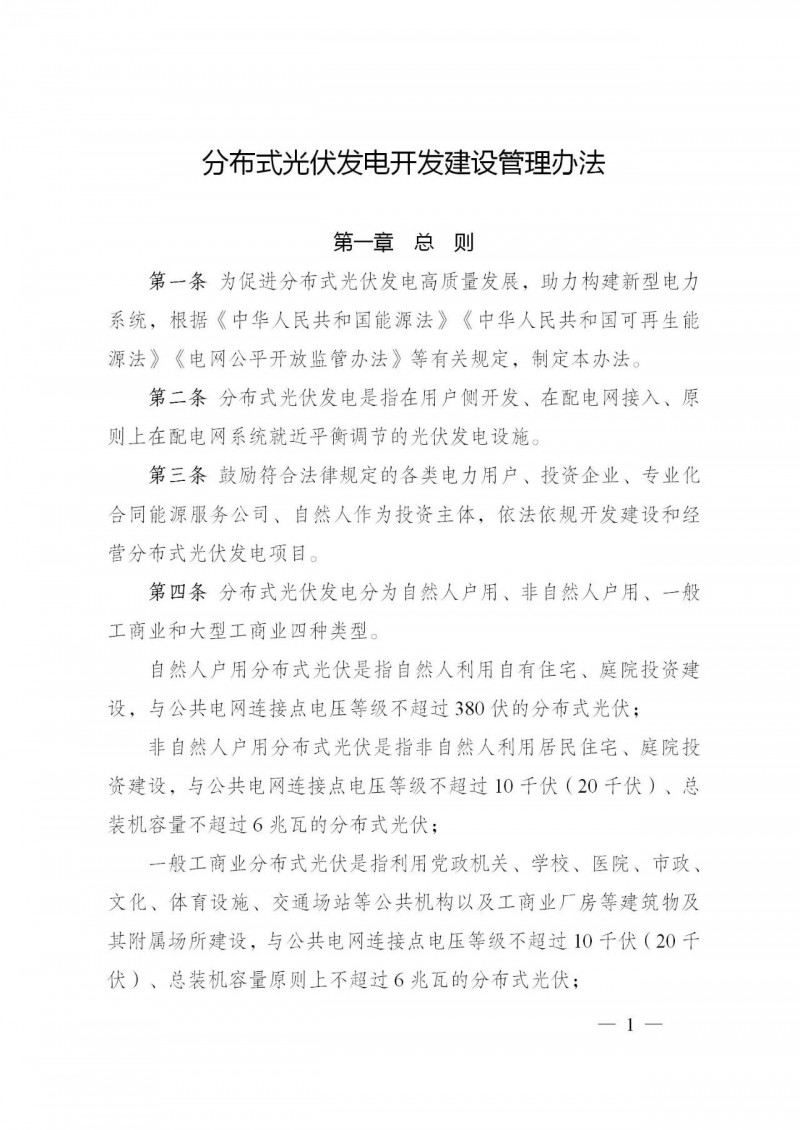 為規范分布式光伏發電開發建設管理,促進分布式光伏發電高質量發展,適應新形勢、新要求,國家能源局對《分布式光伏發電項目管理暫行辦法》(國能新能〔2013〕433號)進行了修訂,形成了《分布式光伏發電開發建設管理辦法》,現印發給你們,請遵照執行。
