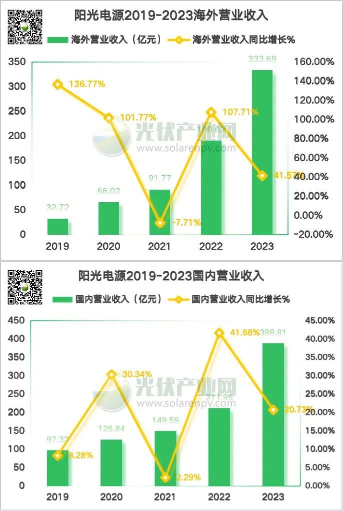 此次在德國法蘭克福證券交易所上市是陽光電源海外擴張的又一大步!從陽光電源的發展歷程來看,針對海外市場布局從未停步。公司海外員工從2022年的900人提升至2023年的1423人,增長了58.1%。2024年上半年,陽光電源已實現海外銷售收入134.76億元,占比為43.44%,海外市場已成為其重要的收入來源。
