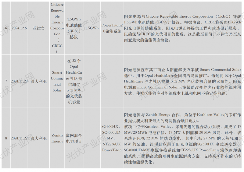 該排名是基于公司在全球各主要市場已安裝和已簽約項目的總裝機量而定。(文末光伏產業網為大家整理了陽光電源近年來在海外具體項目詳表)
