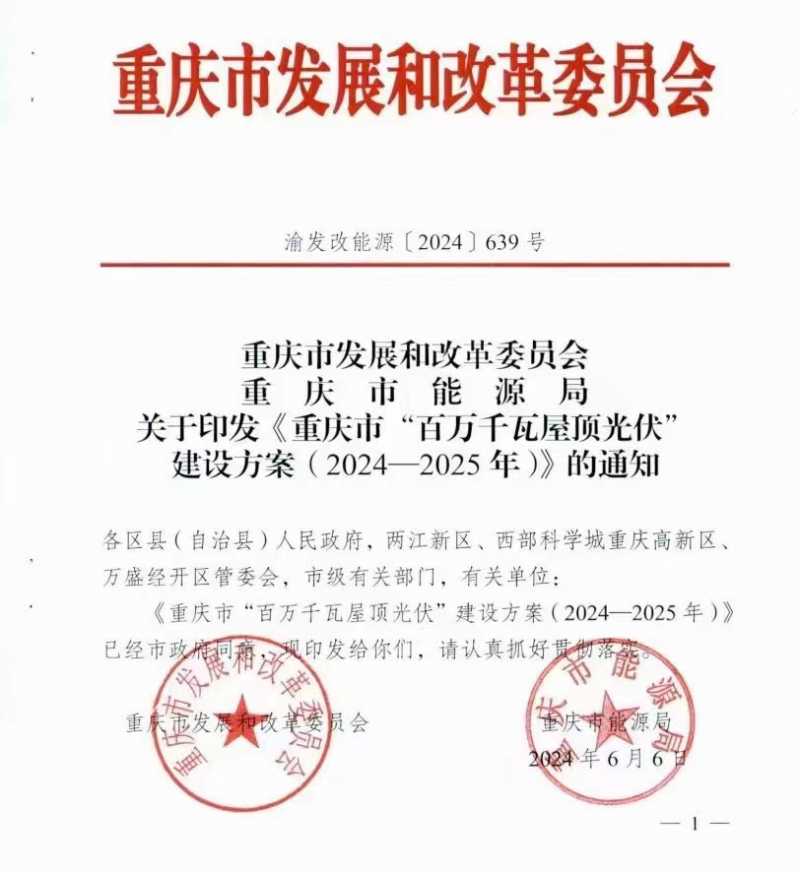 2024年6月,《重慶市“百萬千瓦屋頂光伏”建設方案(2024-2025年)》橫空出世,提出從2024年5月~2025年7月,計劃新增屋頂光伏超100萬千瓦,累計達200萬千瓦,無疑為重慶分布式光伏發展注入了一劑“強心針”。