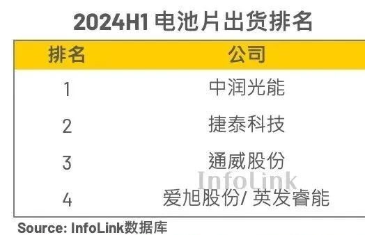 回顧Infolink的調研結果,在2024年上半年,排名前五的電池片供應商總出貨量達到了77.96GW,相較于去年同期,下降了約7%至8%,結束了過去多年高速增長的態勢。