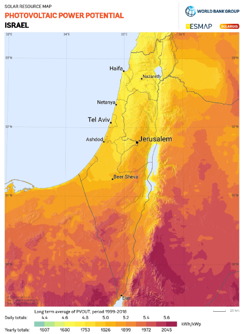 以色列位于中東地區,擁有典型的地中海氣候和干旱氣候,年平均日照時間較長,達到3000小時以上,尤其在夏季,光照資源十分豐富。
