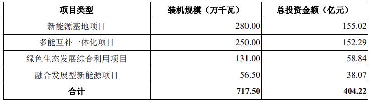 華潤新能源招股說明書顯示,本次發行的募集資金扣除發行費用后將用于公司風力發電、太陽能發電項目建設,擬使用募集資金約245億元。下表中風光發電項目擬投資總額為404.22億元,其中計劃使用募集資金投入245.00億元。