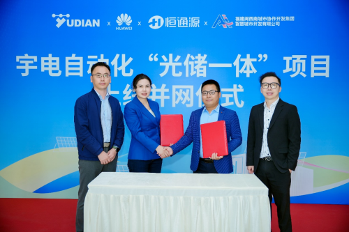 隨后,宇電“光儲一體”項目成功揭牌,這也標志著華為全國首個企業并離網儲能標桿項目順利落地宇電溫控科技產業園。