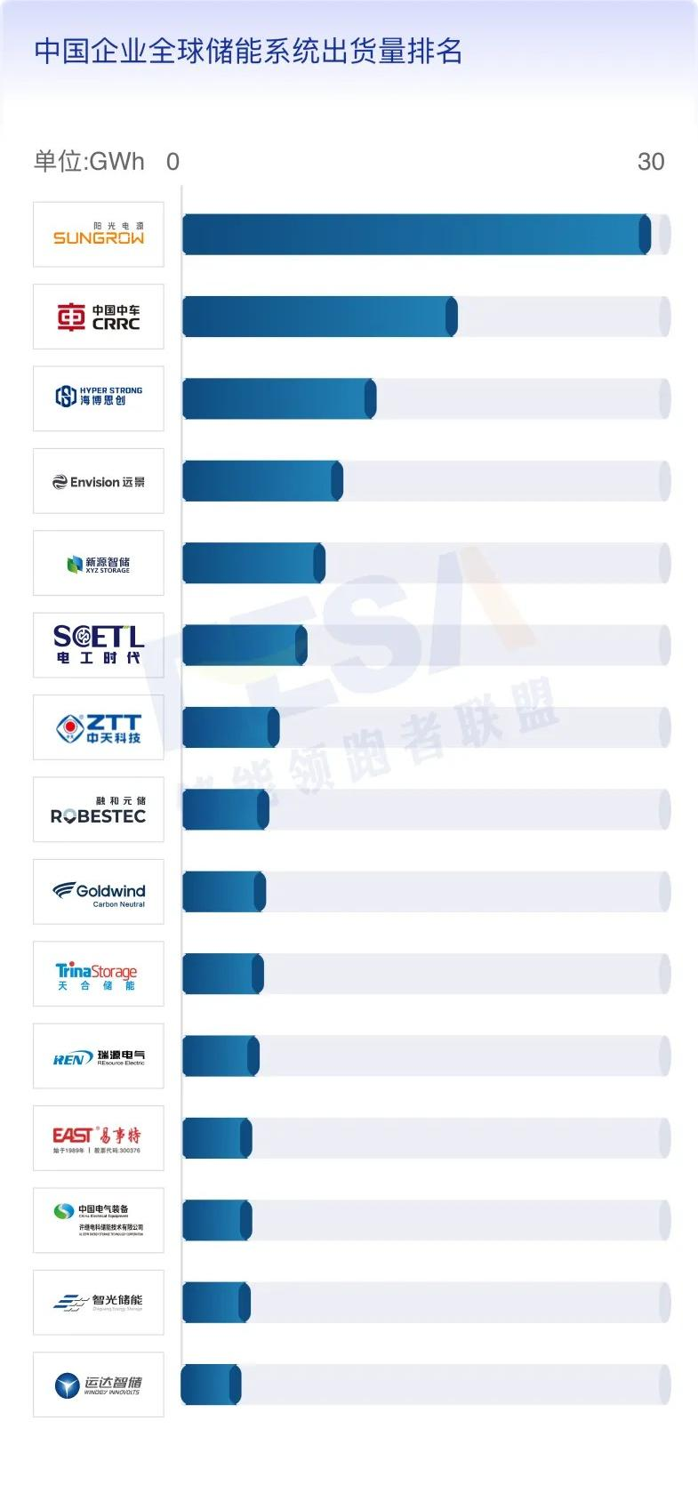 1、中國企業(yè)全球儲(chǔ)能系統(tǒng)出貨量排名