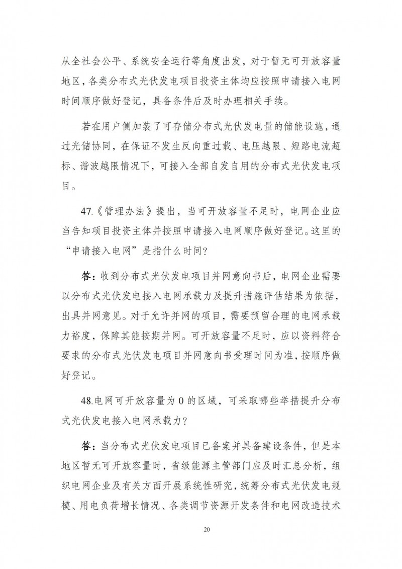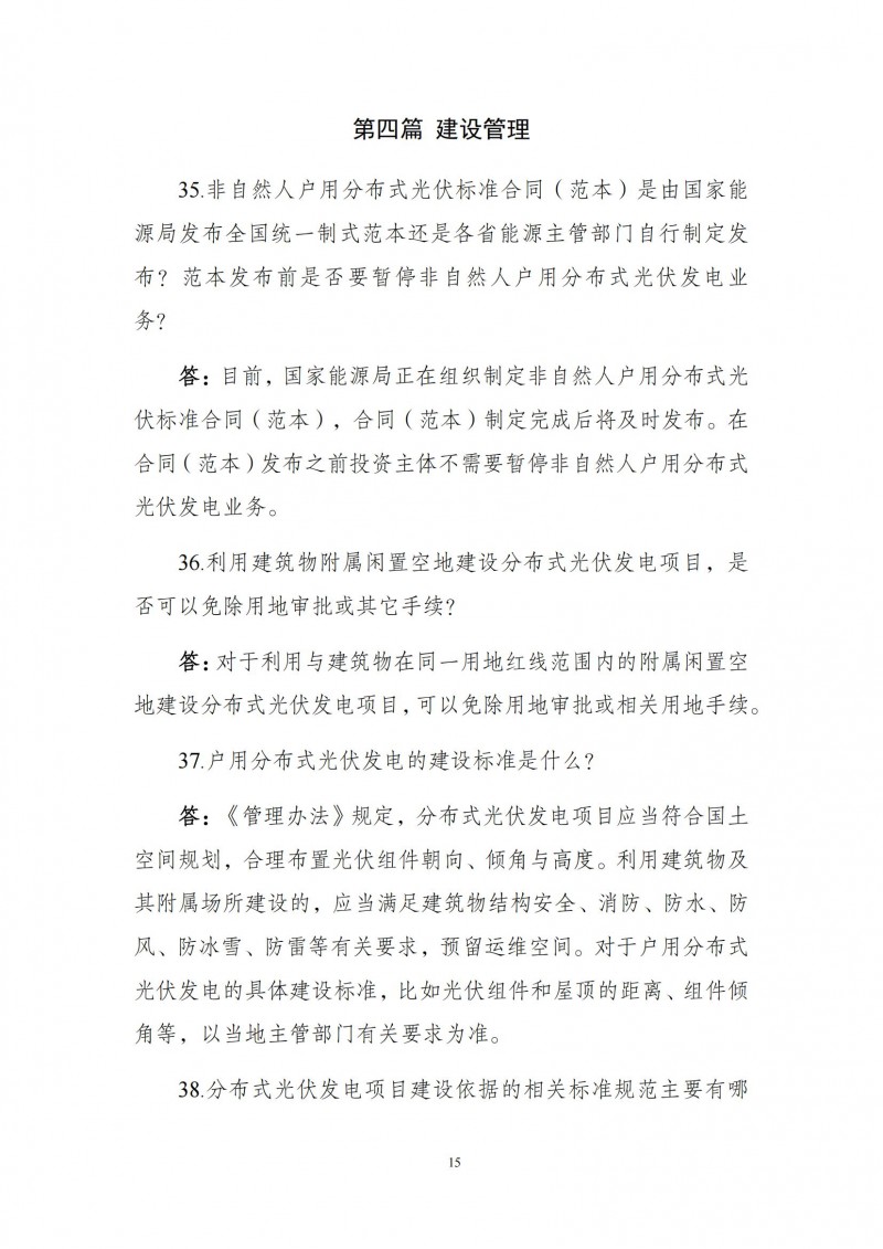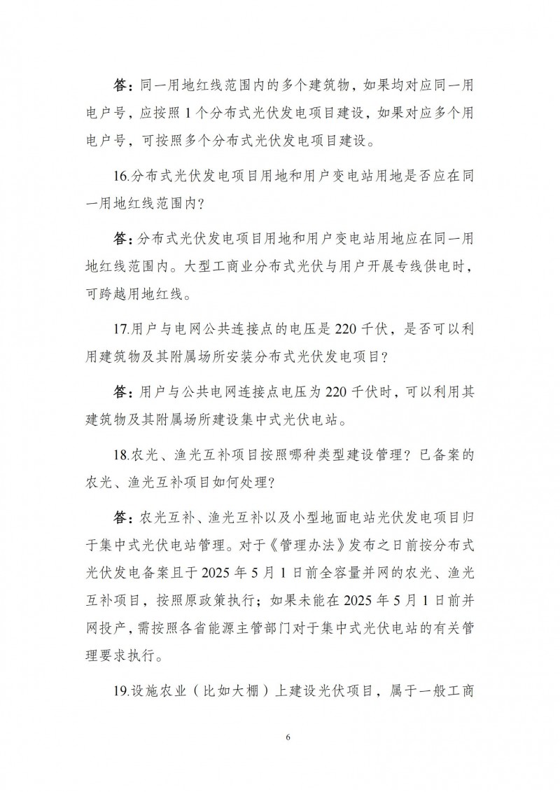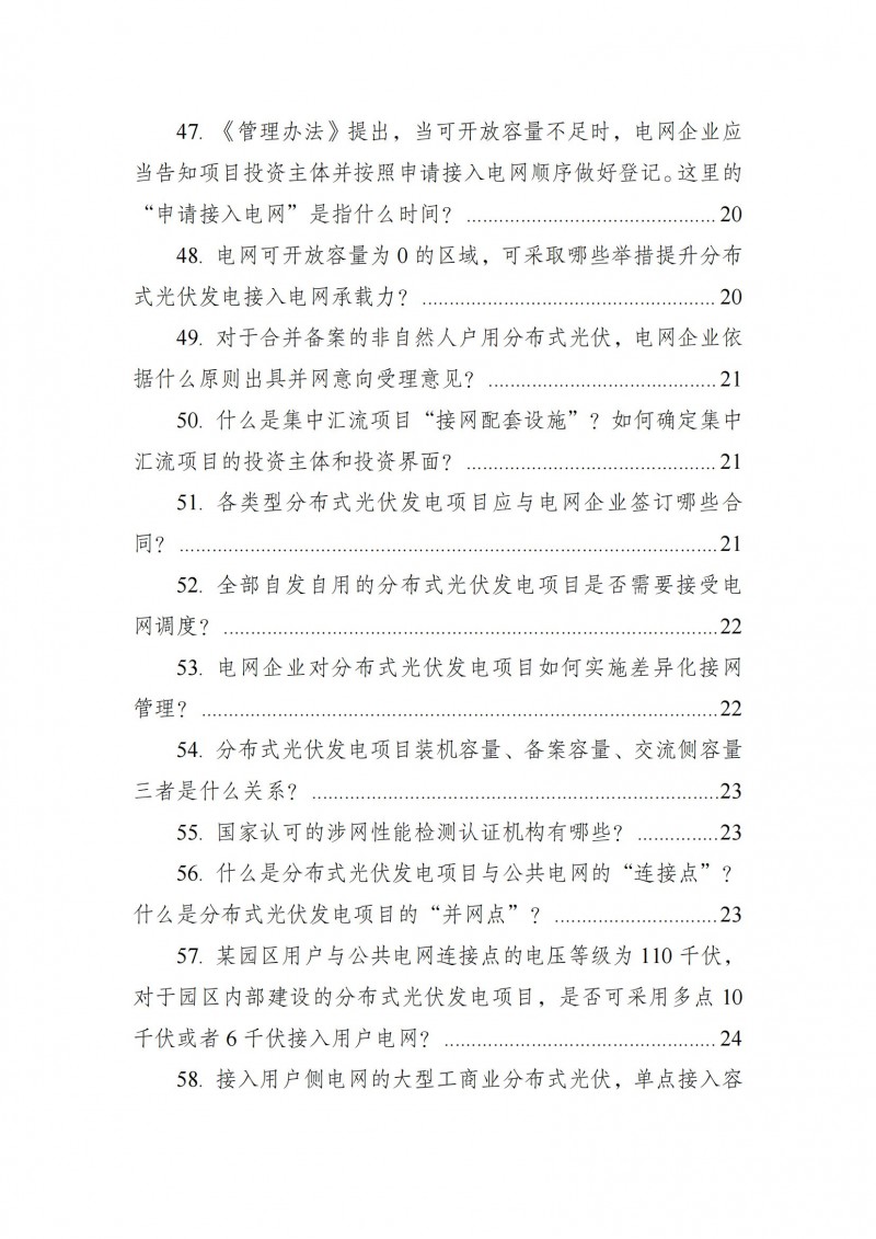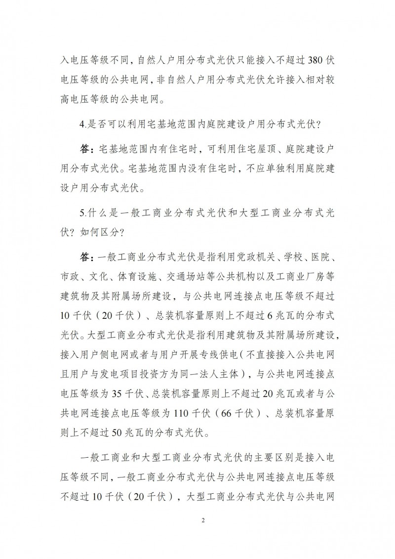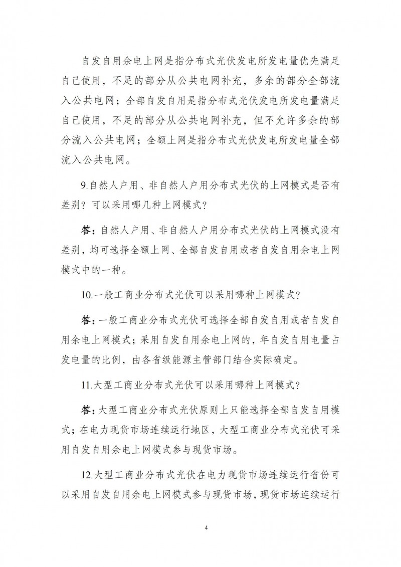 為向社會更好宣貫《分布式光伏發(fā)電開發(fā)建設管理辦法》,進一步推動分布式光伏發(fā)電高質(zhì)量健康發(fā)展,我們組織國家發(fā)展和改革委員會能源研究所、國家電網(wǎng)有限公司、中國南方電網(wǎng)有限責任公司、國家電力投資集團有限公司、水電水利規(guī)劃設計總院、電力規(guī)劃設計總院、中國光伏行業(yè)協(xié)會等有關單位編寫了《〈分布式光伏發(fā)電開發(fā)建設管理辦法〉問答(2025年版)》。現(xiàn)予以公布,供各單位在分布式光伏發(fā)電相關工作中參考。如有意見和建議,請及時反饋,我們將根據(jù)有關情況更新完善。