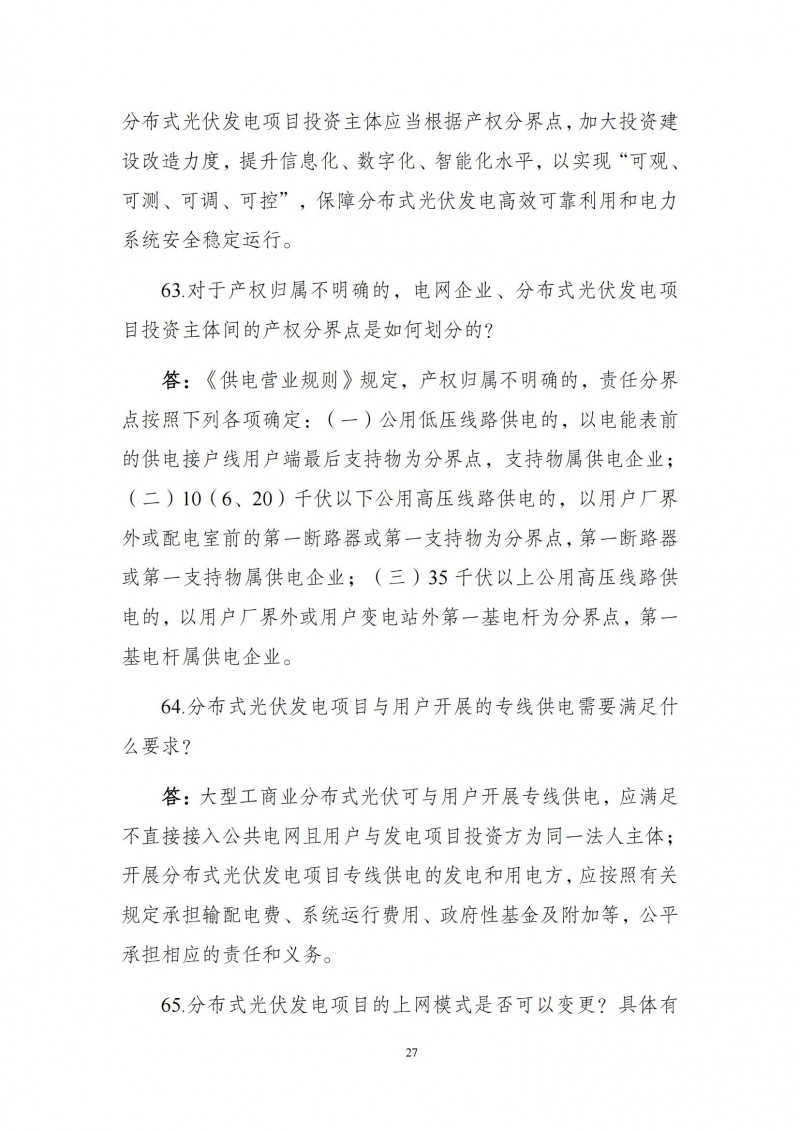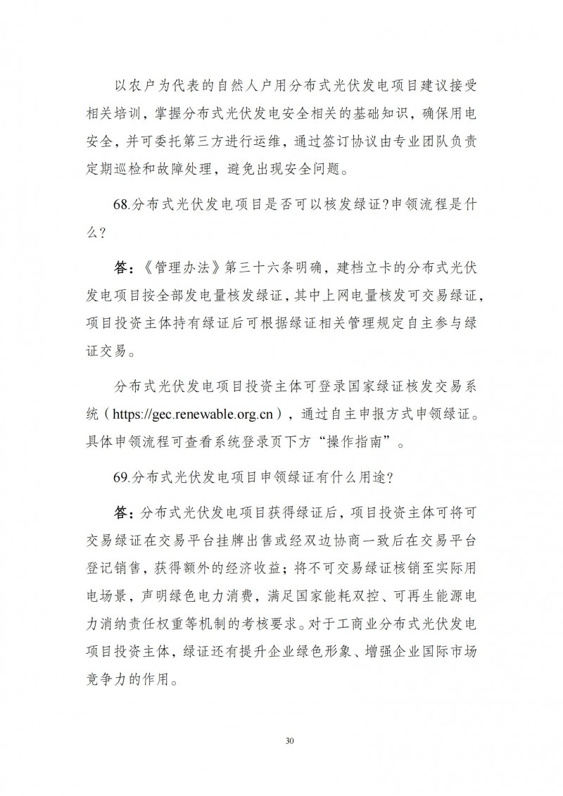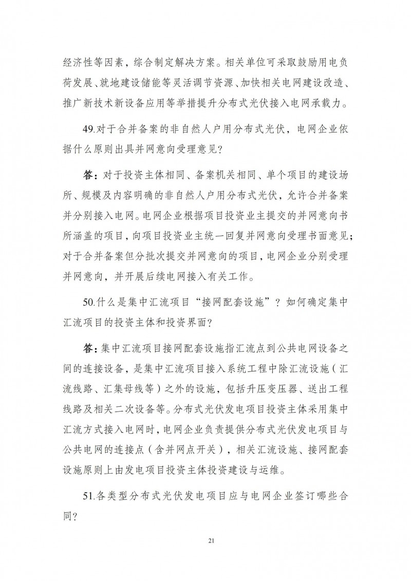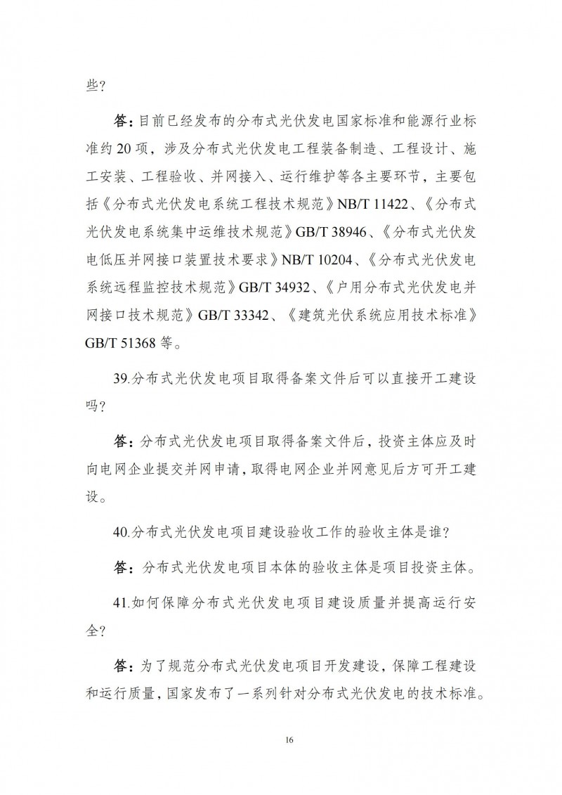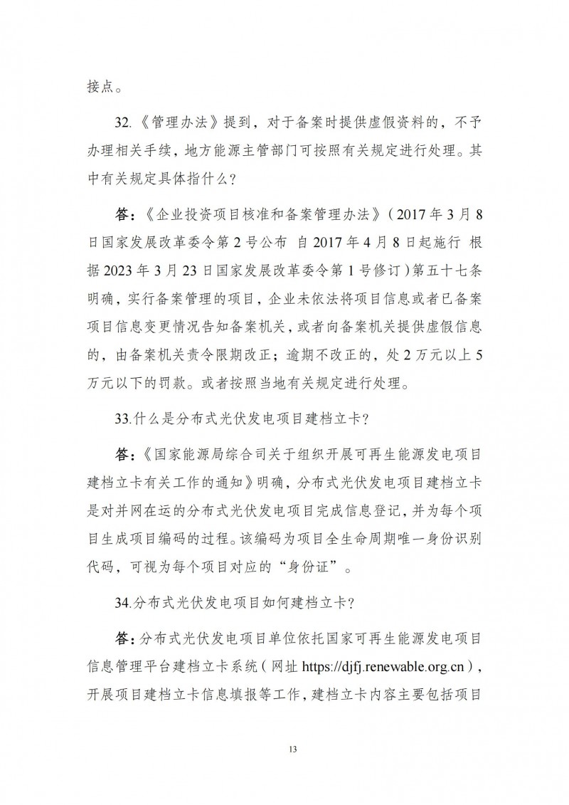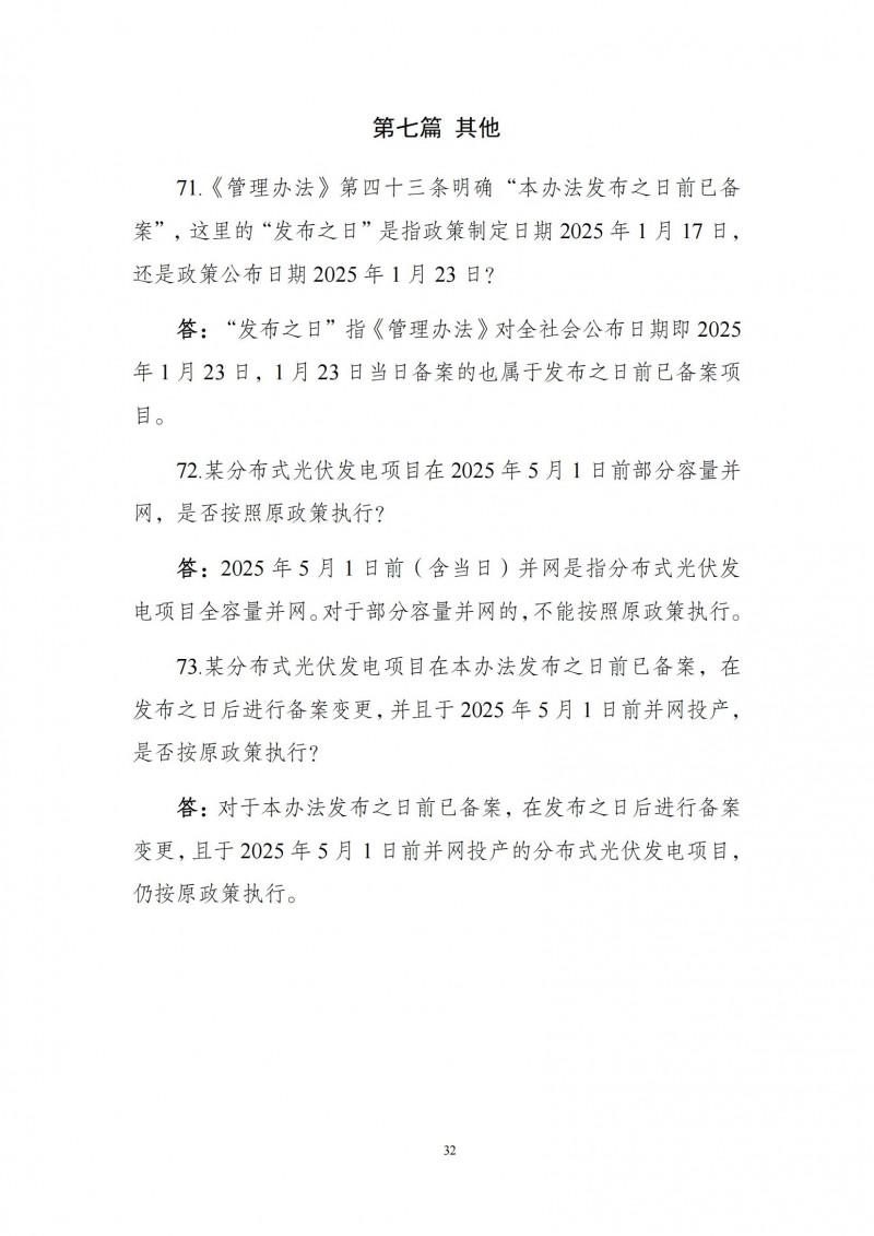為向社會更好宣貫《分布式光伏發(fā)電開發(fā)建設管理辦法》,進一步推動分布式光伏發(fā)電高質(zhì)量健康發(fā)展,我們組織國家發(fā)展和改革委員會能源研究所、國家電網(wǎng)有限公司、中國南方電網(wǎng)有限責任公司、國家電力投資集團有限公司、水電水利規(guī)劃設計總院、電力規(guī)劃設計總院、中國光伏行業(yè)協(xié)會等有關單位編寫了《〈分布式光伏發(fā)電開發(fā)建設管理辦法〉問答(2025年版)》。現(xiàn)予以公布,供各單位在分布式光伏發(fā)電相關工作中參考。如有意見和建議,請及時反饋,我們將根據(jù)有關情況更新完善。