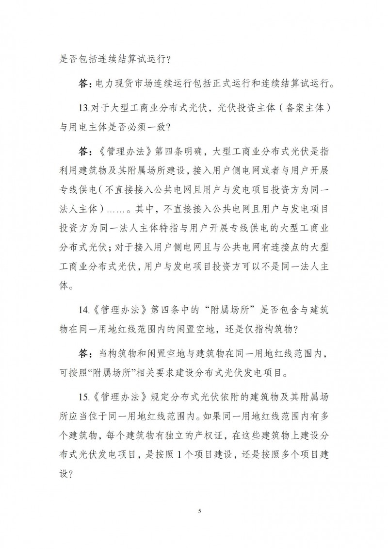答:不直接接入公共電網(wǎng)且用戶與發(fā)電項目投資方為同一法人主體,特指與用戶開展專線供電的大型工商業(yè)分布式光伏;對于接入用戶側(cè)電網(wǎng)且與公共電網(wǎng)有連接點的大型工商業(yè)分布式光伏,用戶與發(fā)電項目投資方可以不是同一法人主體。