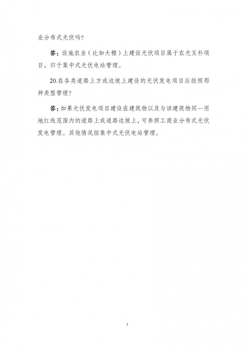 答:如果光伏發(fā)電項目建設在建筑物以及與該建筑物同一用地紅線范圍內(nèi)的道路上或道路邊坡上,可參照工商業(yè)分布式光伏發(fā)電管理。其他情況按集中式光伏電站管理。