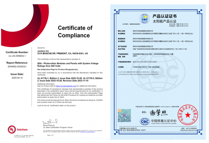 近日,全球便攜儲能領導者與全場景家庭綠電開創者華寶新能其旗下創新產品美學曲面光伏瓦成功通過UL 61730(光伏組件安全認證)國際權威認證和中國質量認證中心(CQC)認證。這一里程碑標志著該產品在安全性、可靠性及環境適應性等多方面達到國際與國內頂尖水平,為全球光伏建筑一體化市場注入創新動能。