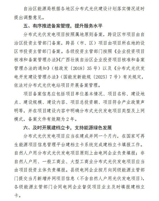 對于國能發新能規〔2025〕7號發布之日前已備案、于2025年5月1日之后并網投產,且利用農業大棚和禽畜棚舍屋頂等建設屋頂分布式光伏項目,以及在其它合法合規建設的屋頂上建設的總裝機容量超過6兆瓦的分布式光伏項目,自治區能源局將另行組織項目評估。項目業主可按照自治區能源局要求,及時報送調整為集中式光伏電站的申請。評估通過后,按照集中式光伏電站相關管理辦法執行。