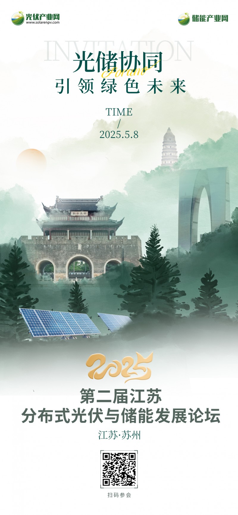 在此背景下,分布式光伏與儲能的協同躍升顯得愈發重要。為此,“2025第二屆江蘇分布式光伏與儲能發展論壇”將于2025年5月8日在江蘇·蘇州隆重舉辦,誠邀光伏、儲能行業同仁相約姑蘇,共赴一場關于春天的光儲盛宴!探討新政下分布式光伏發展面臨的機遇與挑戰,共同推動江蘇光儲產業邁向新征程,共創綠色低碳未來。