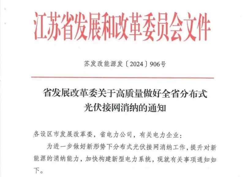 2024年8月12日,江蘇省發展改革委印發《關于高質量做好全省分布式光伏接網消納的通知》。從充分發揮電網配置平臺作用、科學推進系統調節能力提升、積極促進網源協調發展、大力優化接網服務流程四個方面提出了相關措施,促進省內分布式光伏接網消納高質量發展。