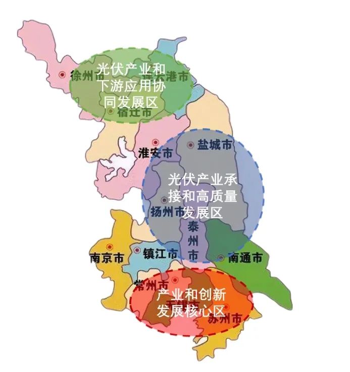 而作為綠色轉型的主力軍,江蘇光伏產業一直保持健康高速發展,區域布局制造與應用并重、蘇南與蘇北協同發展,形成了以常州為引領,鹽城、淮安、宿遷、揚州四市緊隨其后的產業集聚效應。