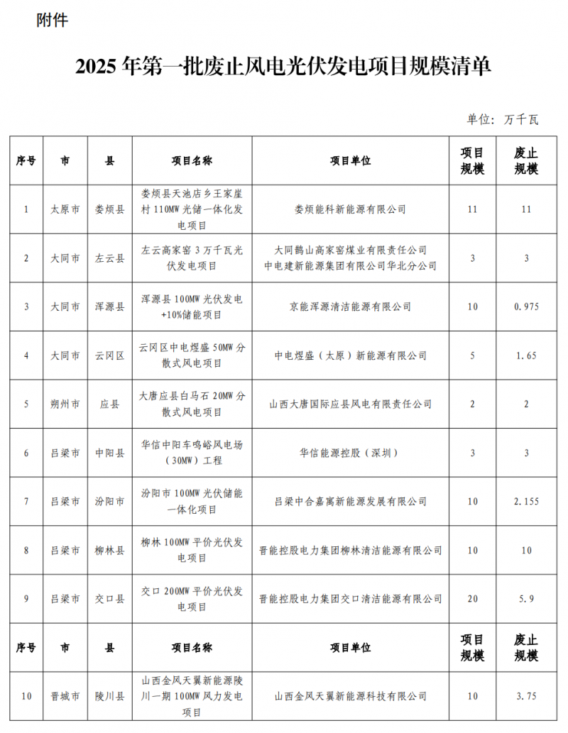 附件:2025年第一批廢止風(fēng)電光伏發(fā)電項目規(guī)模清單