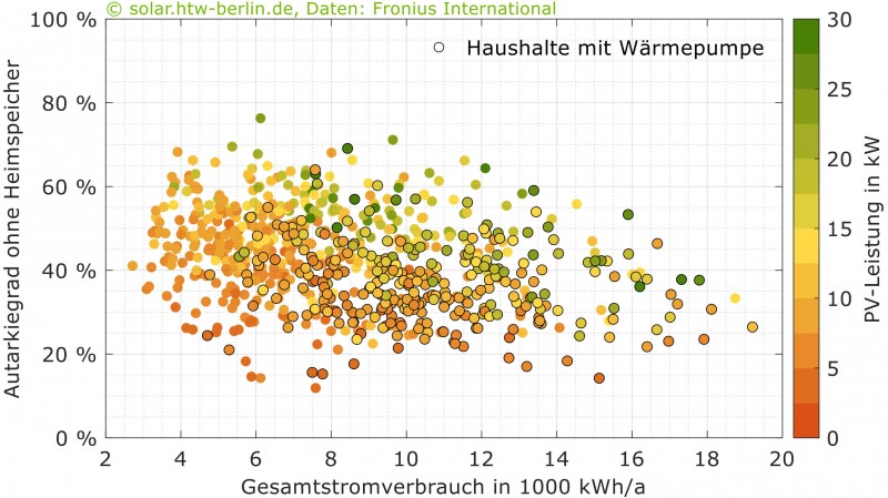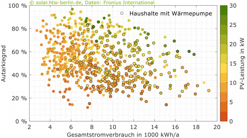 不過由于家庭所在地點、家庭用電量、駕駛行為、光伏系統規模和建筑設備等各方面存在差異,自給自足的程度也各有不同,如下圖所示: