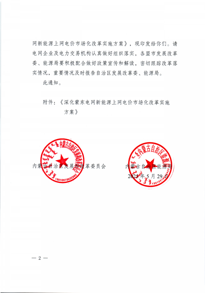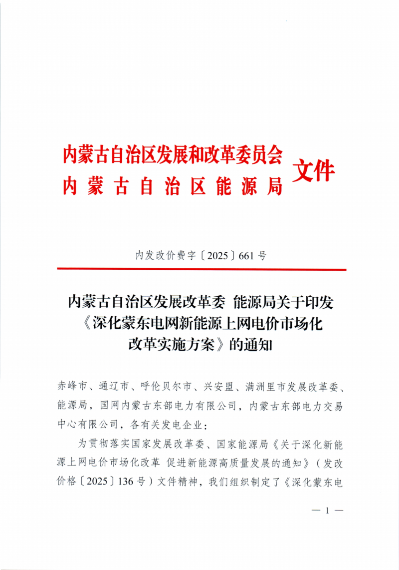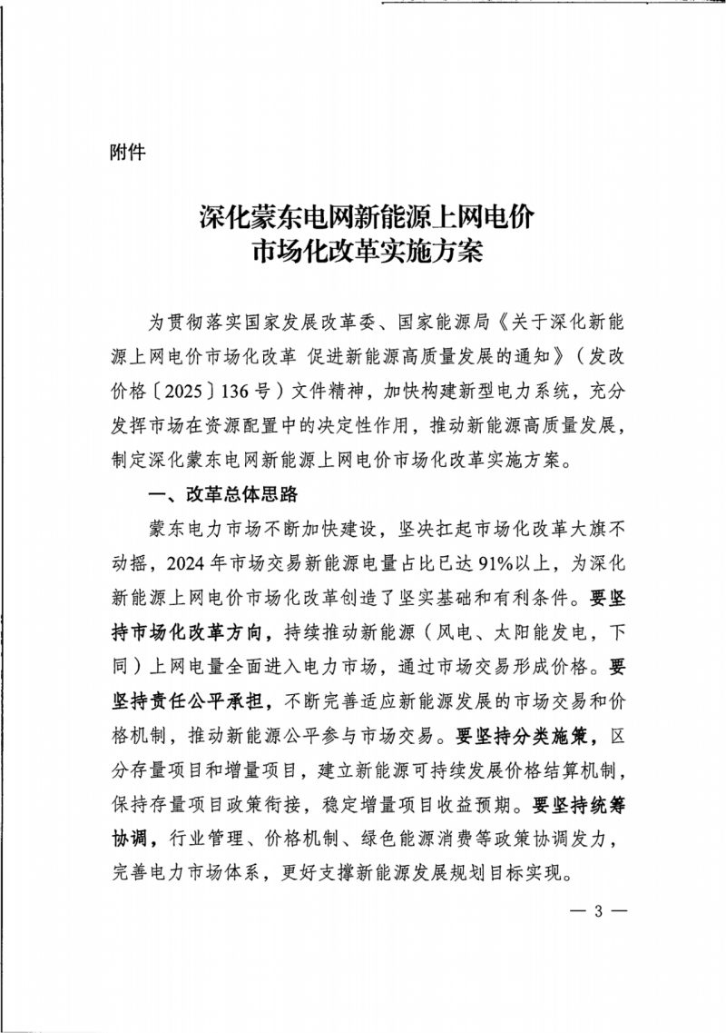 機制電價:納入機制的電量機制電價為蒙東煤電基準價(0.3035元/千瓦時)。當市場環境發生重大變化時,結合市場價格運行實際適時調整機制電價水平。