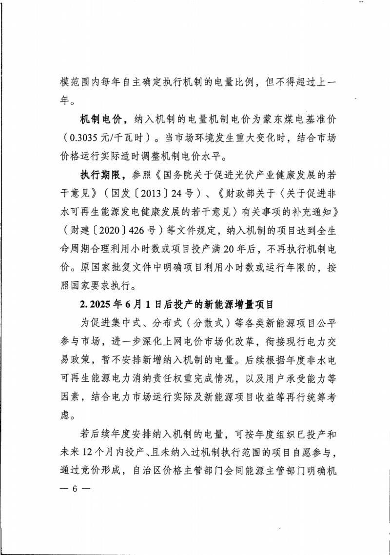 2025年6月1日后投產的新能源增量項目