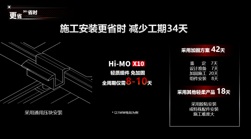隆基綠能分布式業務中國區總裁牛燕燕現場發布數據顯示,Hi-MO X10在輕量化、安裝效率、可靠性等維度均達行業領先水平: