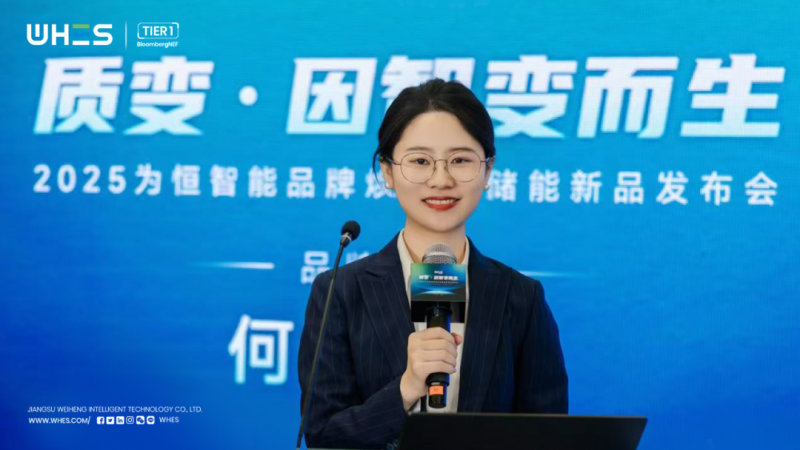 發(fā)布會(huì)上,為恒智能市場(chǎng)總監(jiān)何嘉儀詳細(xì)解讀了全新品牌 LOGO 設(shè)計(jì)理念。新 LOGO WHES 以 “WH” 為基礎(chǔ),巧妙融入 “E” 元素。“E” 的三橫分別象征著為恒智能對(duì)地球(EARTH)的責(zé)任、對(duì)能源(ENERGY)的深刻洞察以及對(duì)成為行業(yè)專家(EXPERT)的不懈追求。溫暖綠、天空藍(lán)、科技藍(lán)三種色彩賦予 “E” 豐富內(nèi)涵,分別體現(xiàn)人文關(guān)懷、未來愿景與科技創(chuàng)新精神。最后的 “S” 代表為全球用戶提供高效穩(wěn)定的儲(chǔ)能(STORAGE)方案,將可持續(xù)發(fā)展(SUSTAINABILITY)理念貫穿始終,通過智能(SMART)系統(tǒng)與技術(shù),賦能全球家庭與城市。