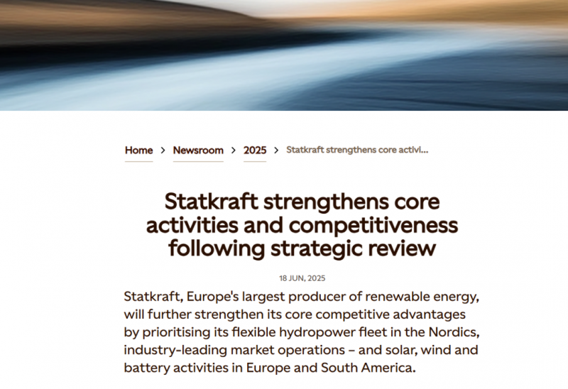 Statkraft稱將專注于核心業務,優先考慮短期現金流而非規模擴張,同時努力降低業務復雜性和成本。