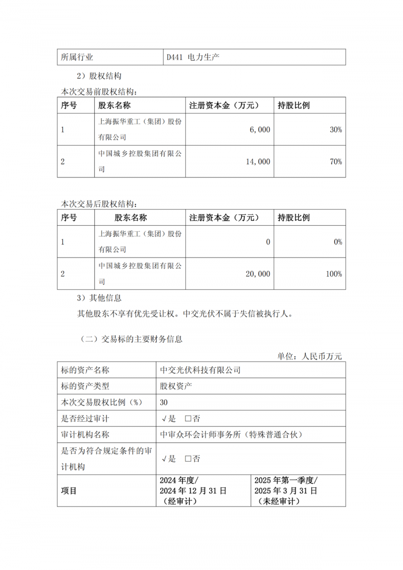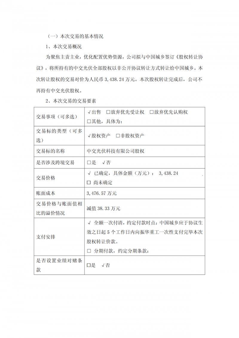 振華重工表示,為聚焦主責主業,優化配置優勢資源,公司擬將所持有的中交光伏全部股權以非公開協議轉讓方式轉讓給中國城鄉。