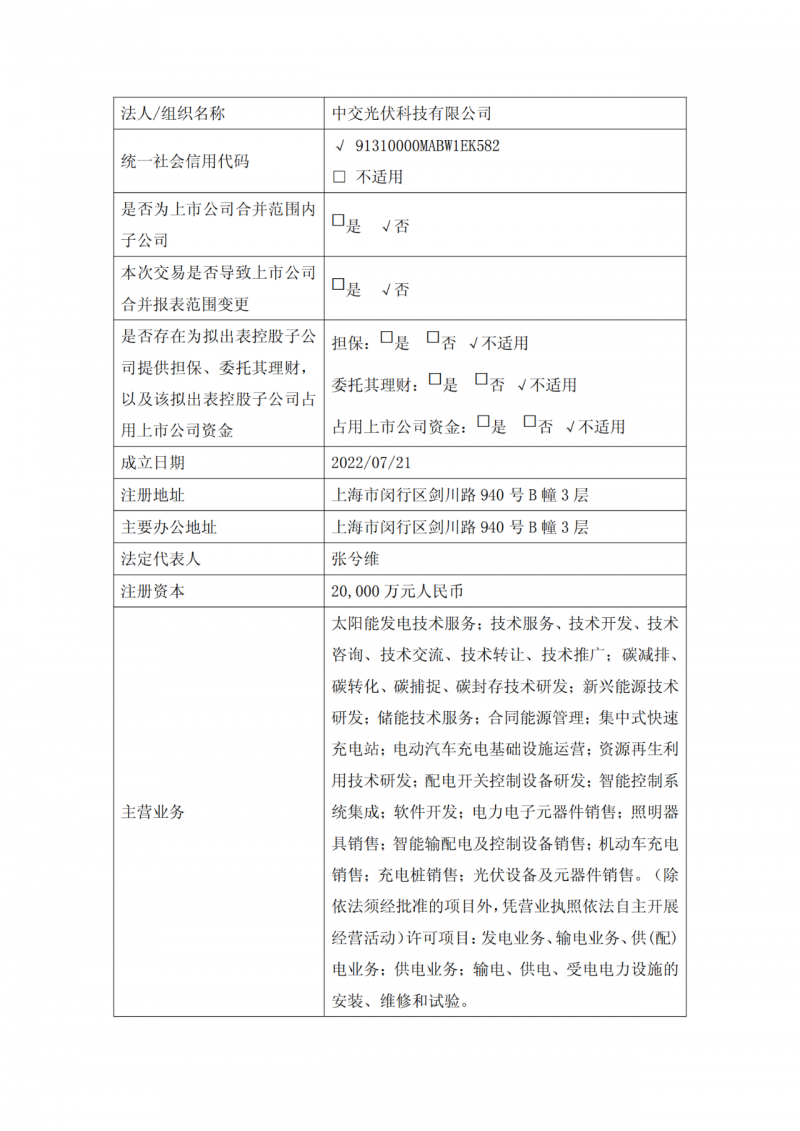 7月23日,振華重工發布公告(原文見附件),公司擬將所持有的中交光伏科技有限公司全部股權以非公開協議轉讓方式轉讓給中國城鄉控股集團有限公司,交易對價為人民幣3,438.24萬元。本次股權轉讓完成后,公司不再持有中交光伏股權。