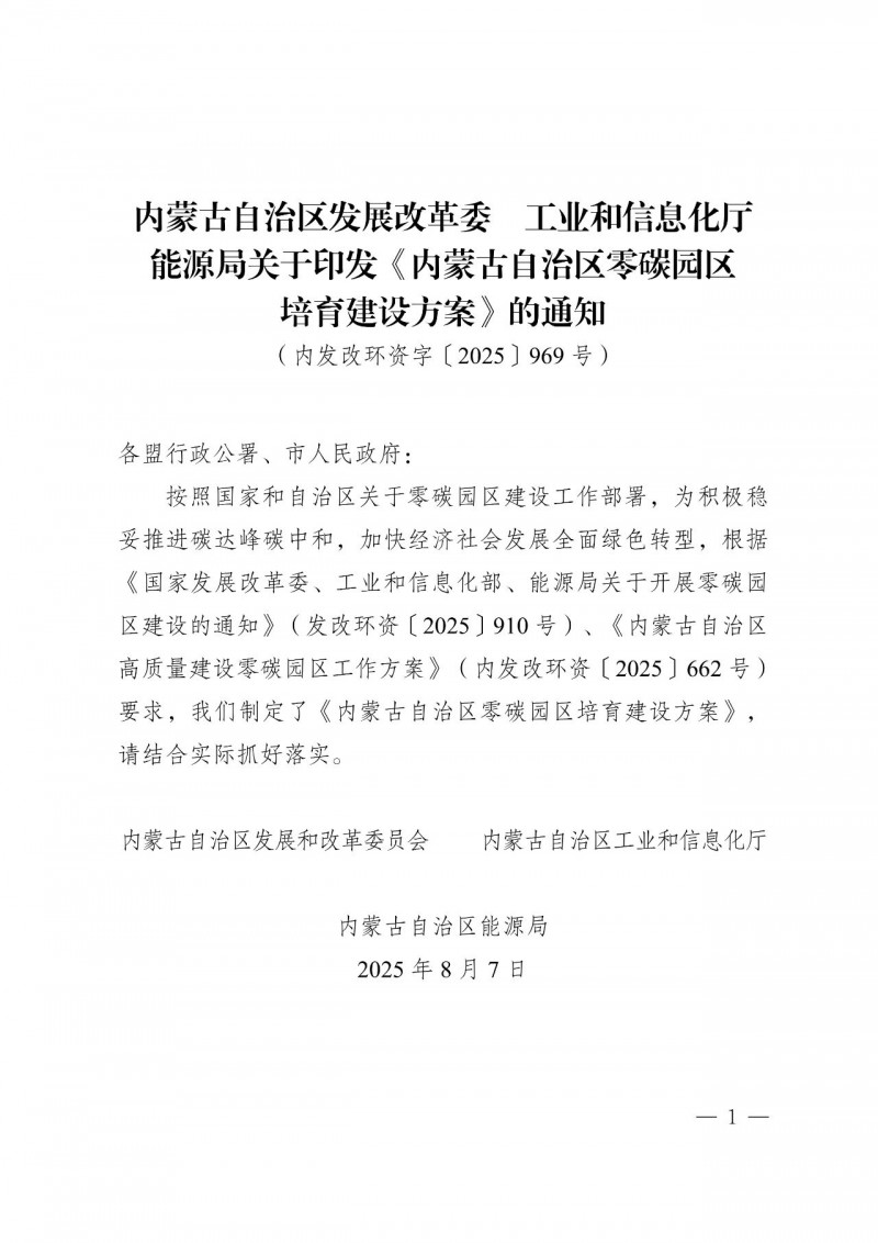 2025年4月份以來,先行組織全區(qū)有條件、有意愿的園區(qū)做好申報(bào)遴選工作、編制建設(shè)方案,對(duì)35個(gè)擬申報(bào)創(chuàng)建零碳園區(qū)進(jìn)行綜合評(píng)審、現(xiàn)場調(diào)研。在此基礎(chǔ)上,要求各盟市推薦申報(bào)國家級(jí)零碳園區(qū)不超過1個(gè)、申報(bào)自治區(qū)級(jí)零碳園區(qū)數(shù)量不超過3個(gè)。