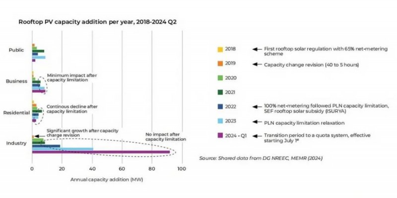 2018-2024 Q2屋頂光伏的新增容量 圖源:IESR《印尼光伏市場展望2025》