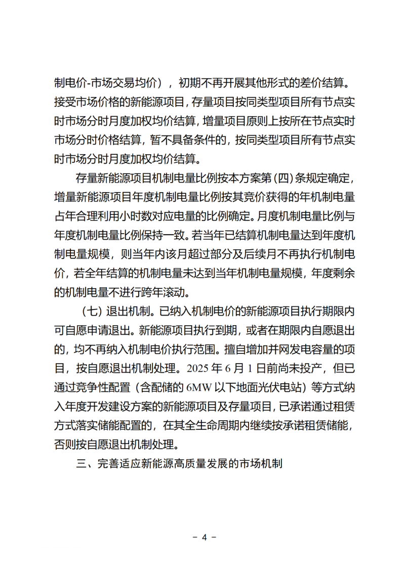 2025年6月1日前尚未投產(chǎn),但已通過競爭性配置(含配儲的6MW以下地面光伏電站)等方式納入年度開發(fā)建設(shè)方案的新能源項(xiàng)目及存量項(xiàng)目,已承諾通過租賃方式落實(shí)儲能配置的,在其全生命周期內(nèi)繼續(xù)按承諾租賃儲能,否則按自愿退出機(jī)制處理。