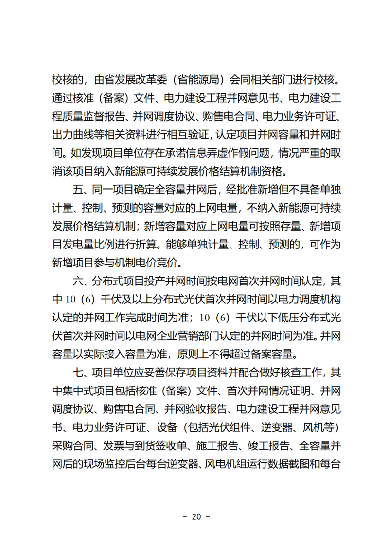機(jī)制電價(jià):按我省燃煤發(fā)電基準(zhǔn)價(jià)(0.3844元/千瓦時(shí))執(zhí)行。部分項(xiàng)目已有文件明確其上網(wǎng)電價(jià)的,以該上網(wǎng)電價(jià)(不含補(bǔ)貼)作為其機(jī)制電價(jià)。執(zhí)行期限:按自投產(chǎn)之日起滿20年與剩余全生命周期合理利用小時(shí)數(shù)(風(fēng)電36000小時(shí)、光伏22000小時(shí))較早者確定。
