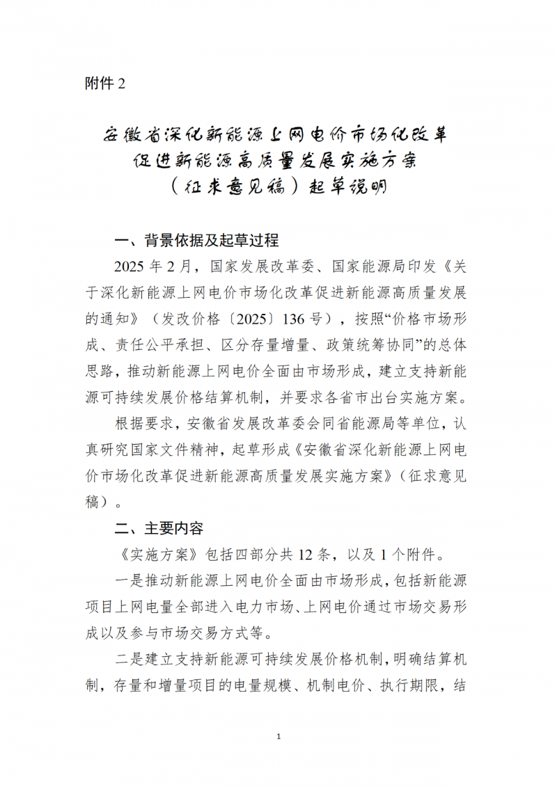 附件:1.安徽省深化新能源上網(wǎng)電價(jià)市場化改革促進(jìn)新能源高質(zhì)量發(fā)展實(shí)施方案(征求意見稿)