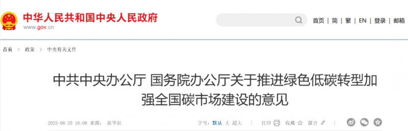 8月25日,中共中央辦公廳、國務院辦公廳《關于推進綠色低碳轉型加強全國碳市場建設的意見》對外公布。其中指出,到2027年,全國碳排放權交易市場基本覆蓋工業領域主要排放行業,全國溫室氣體自愿減排交易市場實現重點領域全覆蓋。到2030年,基本建成以配額總量控制為基礎、免費和有償分配相結合的全國碳排放權交易市場,建成誠信透明、方法統一、參與廣泛、與國際接軌的全國溫室氣體自愿減排交易市場,形成減排效果明顯、規則體系健全、價格水平合理的碳定價機制。光伏行業迎來新機遇。