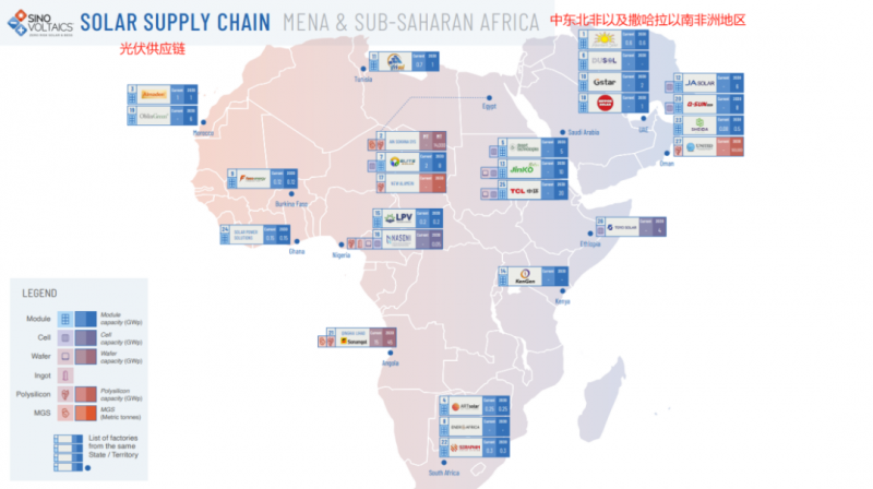 有報告預計,到2030年,中東非洲的組件產能或達62.12GW,電池片52.55GW,多晶硅45GW,冶金級硅29萬噸。