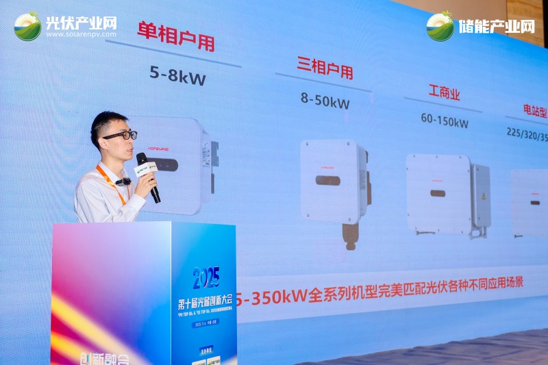 特變電工新能源分布式解決方案經(jīng)理劉廣飛深度解碼了公司新一代全場景分布式逆變器。他強調(diào),產(chǎn)品以“電網(wǎng)友好、高效可靠”為核心,通過130%電壓波動耐受、Level 4級直流拉弧檢測及IP66+C5H防腐認證等硬核技術(shù),確保設(shè)備在復雜電網(wǎng)與嚴苛環(huán)境下依然表現(xiàn)卓越。方案覆蓋戶儲與工商儲,并與“小特光儲云”平臺無縫銜接。