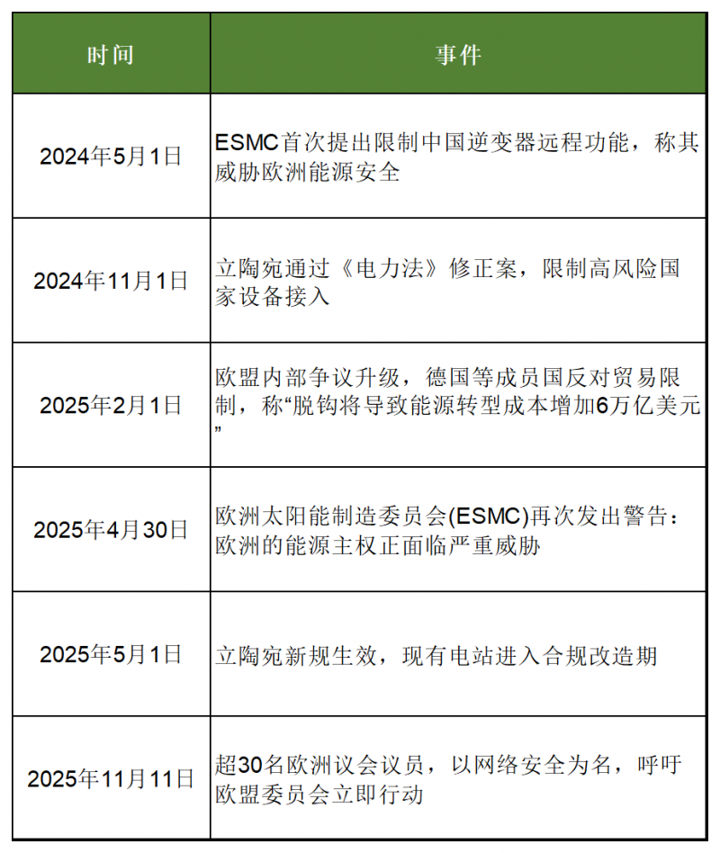 早在2024年5月,ESMC就曾公開呼吁“限制非歐洲制造商的遠程控制功能”,并宣稱中國產逆變器占據歐洲市場70%的份額,存在“網絡安全風險”。