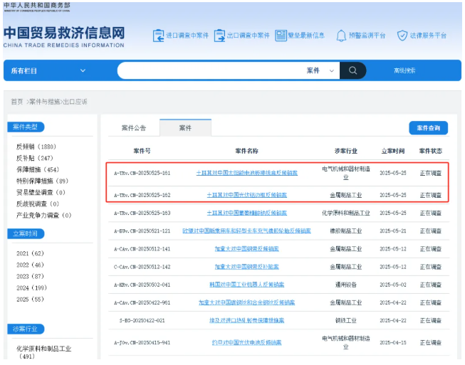 今年5月,土耳其貿易部連發兩則公告,對原產于中國的太陽能電池板接線盒以及光伏鋁邊框啟動反傾銷調查。