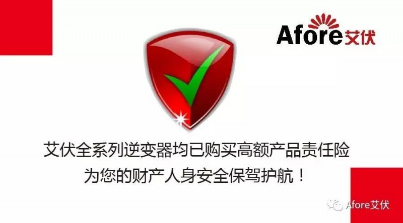 艾伏一直以過硬的產品質量和優質的售前售后服務為理念,服務廣大客戶。此次購買高額保險,更是對廣大客戶的人身財產安全保駕護航。您所購買的每一臺艾伏逆變器背后都有一份堅實的保障。