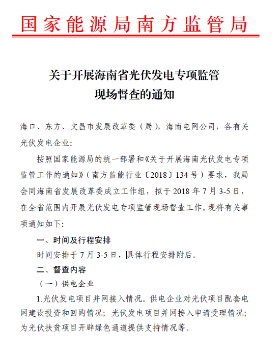 海南省開展光伏發(fā)電專項監(jiān)管現(xiàn)場督查