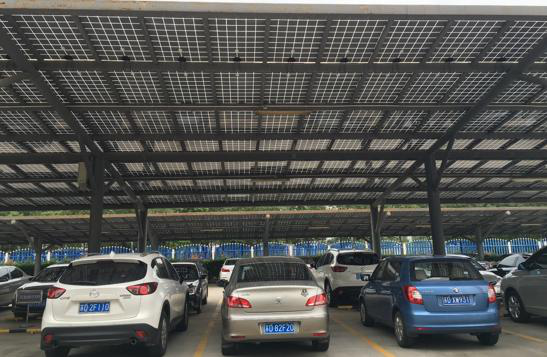 “這些都是可利用的能源,連接充電樁,就可以為電動車充電。”天合光能的工作人員介紹說,辦公樓一樓的雨棚同樣使用了光伏電池組件。