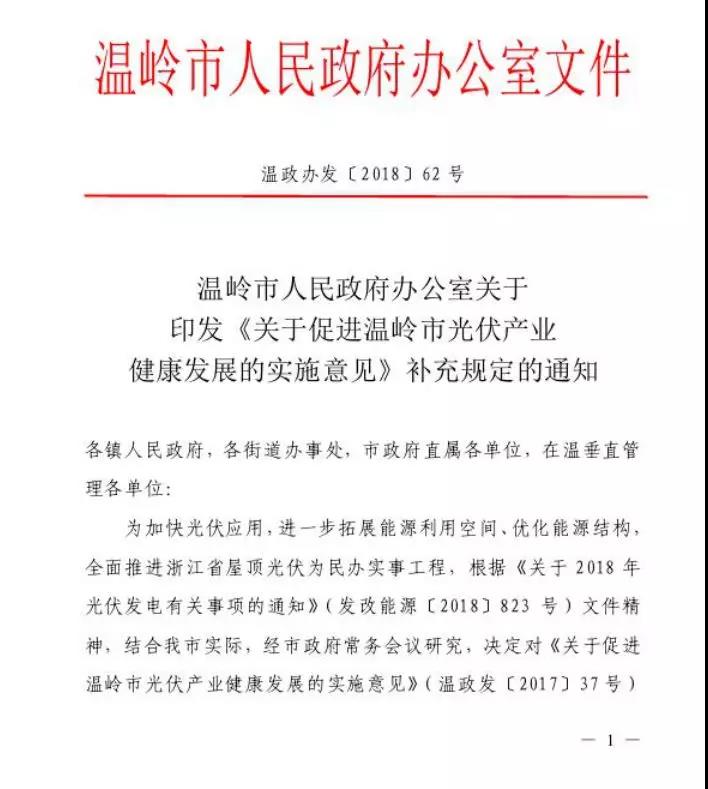 核心提示:浙江溫嶺家用光伏10月31日前并網 仍享0.32元補助!