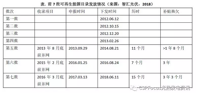 表.前7批可再生能源目錄發放情況(來源:智匯光伏,2018)