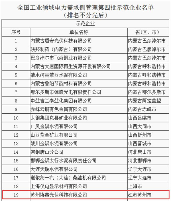 蘇州協鑫、洛陽中硅在列 工信部公布工業領域電力需求側管理第四批示范企業(園區)