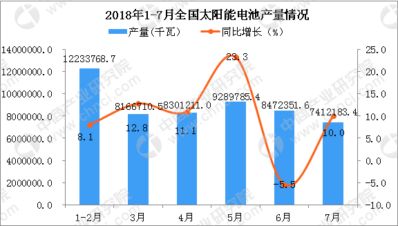 2018年1-7月全國太陽能電池產量數據:同比增長7.53%