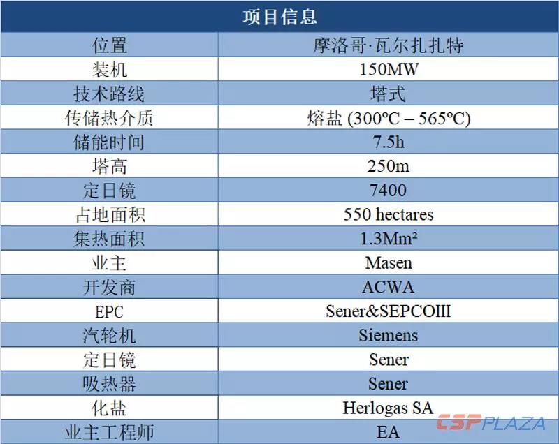 據CSPPLAZA此前報道,該項目儲熱時長達7.5小時,可為摩洛哥電網日均長達5小時的用電高峰時段(電價溢價率達18%)提供調峰電力。作為繼美國新月沙丘光熱電站(裝機110MW)之后即將投運的全球第二座百兆瓦級商業化熔鹽塔式光熱電站,也是單塔裝機最大的塔式光熱電站。