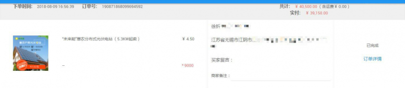 (下圖是徐先生在未來能商城購(gòu)買的電站及用抵用券購(gòu)買的產(chǎn)品截圖)