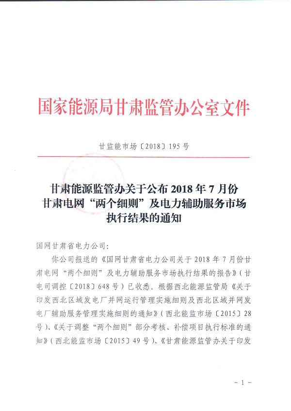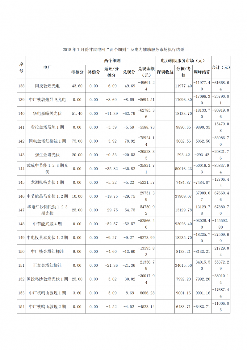 7月甘肅電網“兩個細則”及電力輔助服務市場執行結果(